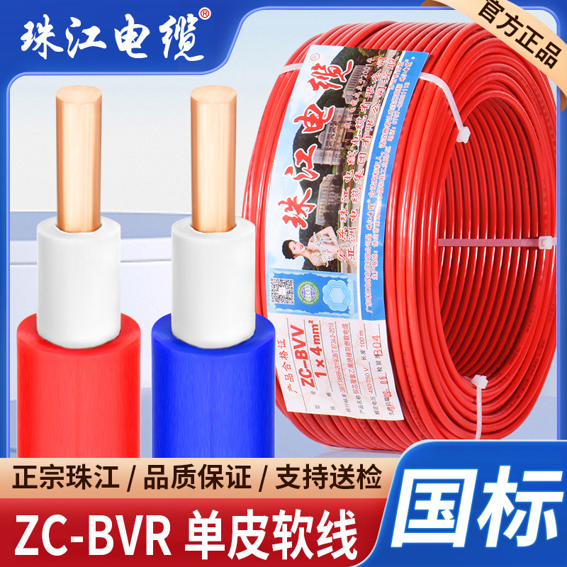 国標珠江ケーブルBVV電線1.5.2.5 6平方双皮単芯純銅芯難燃家具硬線