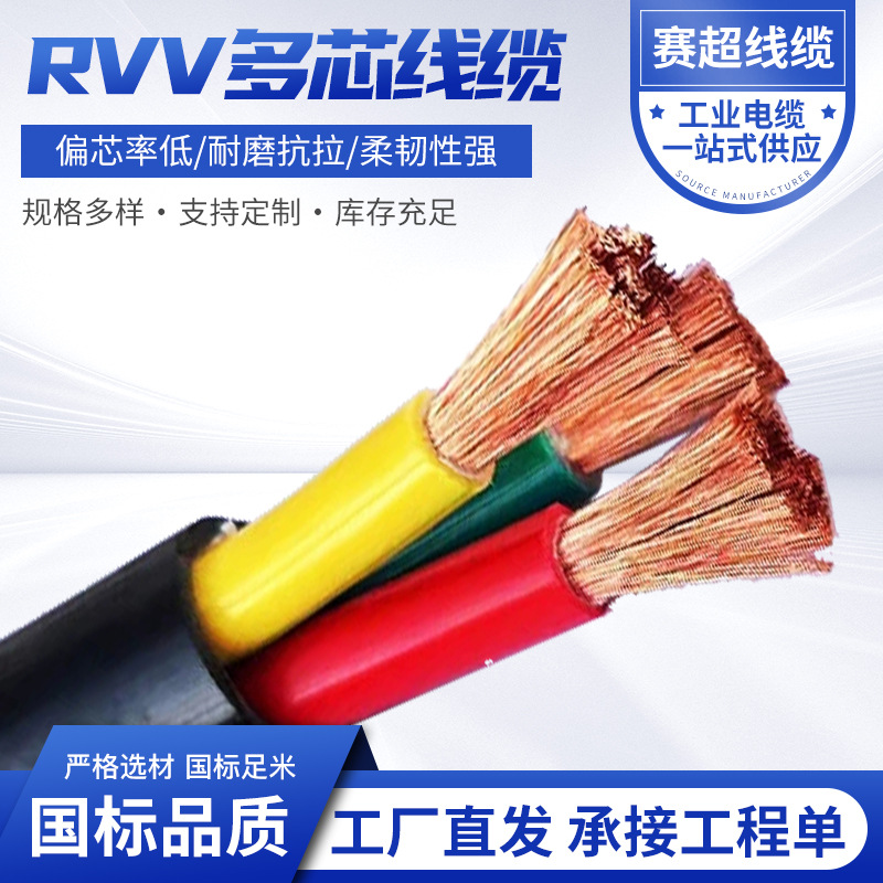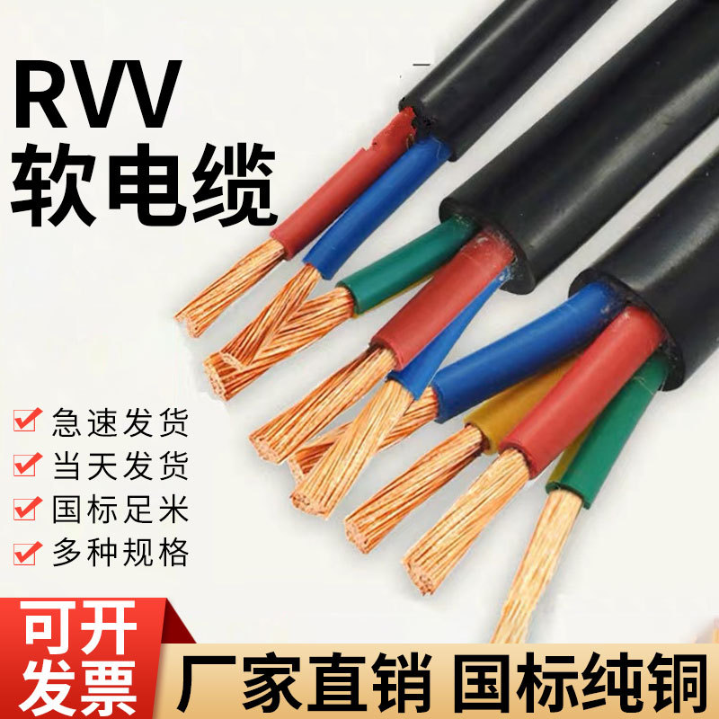 RVVケーブル純銅芯保護カバー線2芯3芯4芯軟電線三相電源線.平方