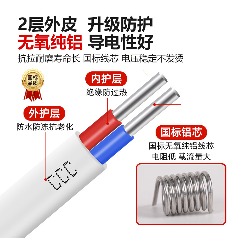 国標2芯保護カバー線アルミ芯家庭用屋外電線46101625平方線二芯アルミケーブル