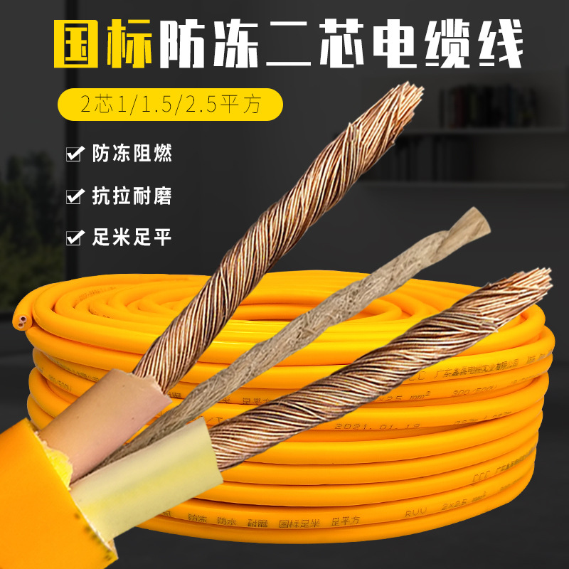 戸外凍結防止ソフトケーブル2芯牛筋線電線1.52.5平方国標保護ケーブルは50/100メートルに達した