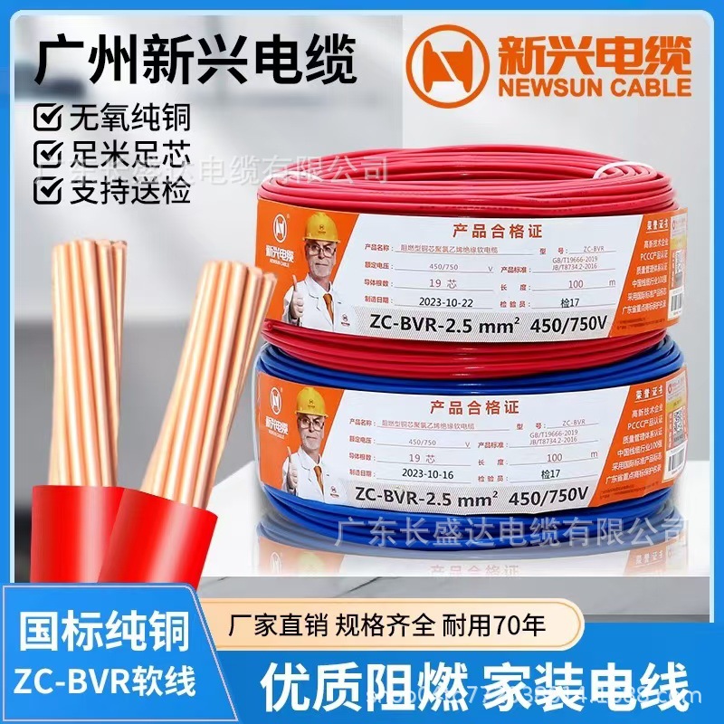 広州新興電線ケーブルZC-BVR1.5 2.5 4 6平方家庭用多股銅線メーカー直販