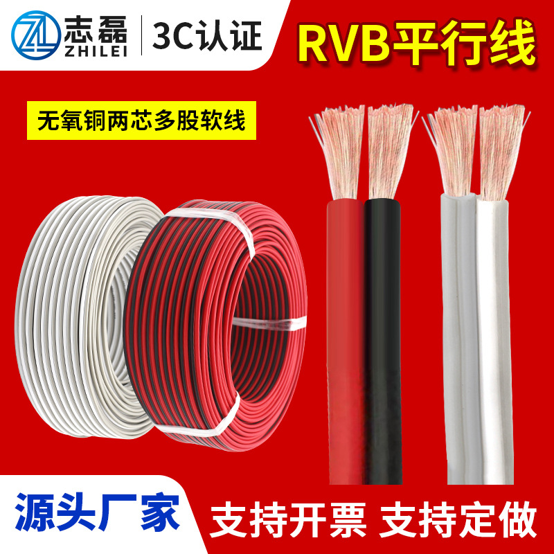 純銅赤黒線rvb2芯平行線灰白二重並列線電源コードランプ帯放送線ランプ線