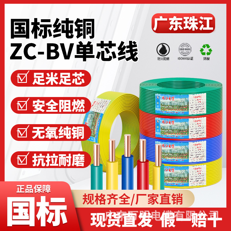 広東珠江ブランド電線BV1.5/2.5/4/6平方電線家庭用難燃一本銅芯硬線