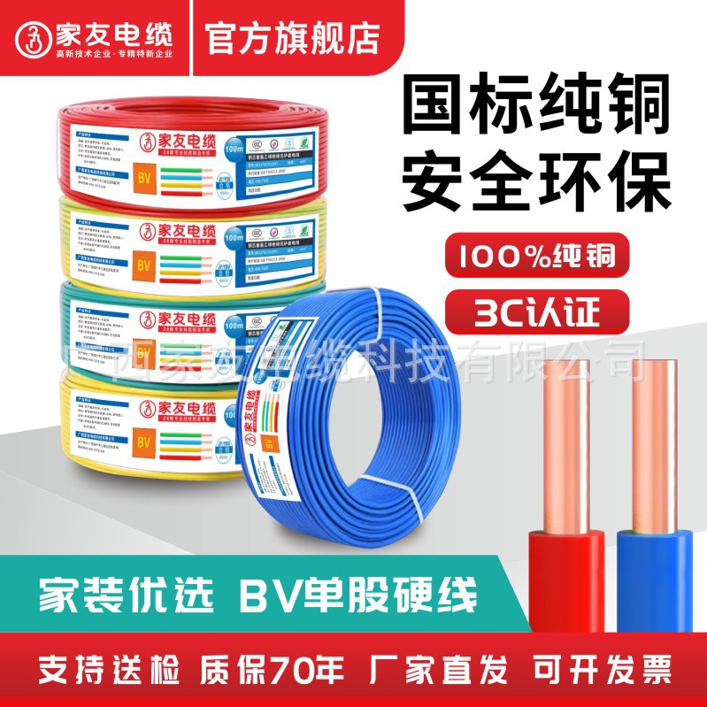 Jiayou ケーブル bv 純銅単芯硬線 bv/1.5/2.5/4/6 平方ワイヤー家の装飾銅線アース線ケーブル