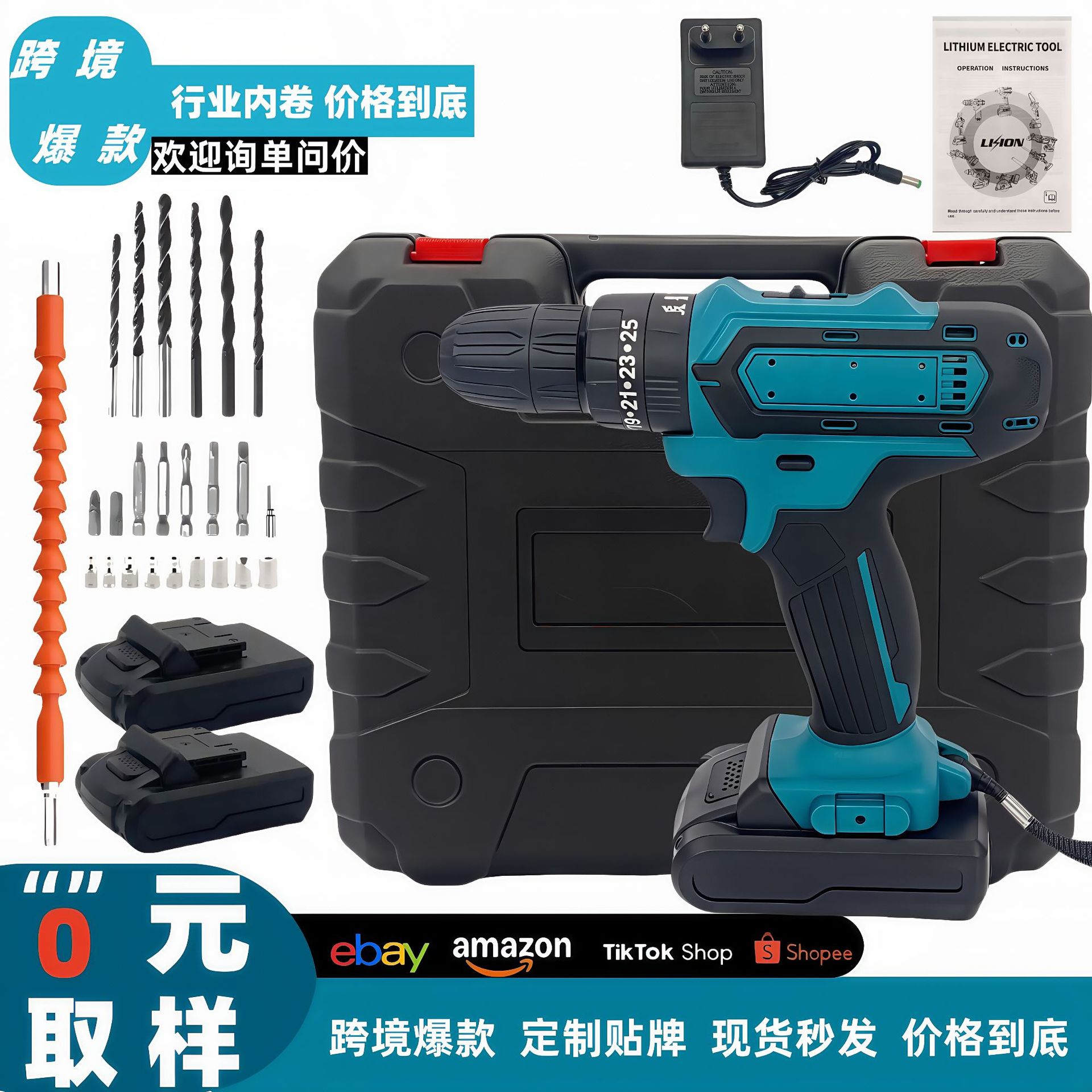 外国貿易二速リチウム電気ドリル電動ドライバークロスボーダー多機能ブラシレスハンドドリル大出力インパクトドリルセット