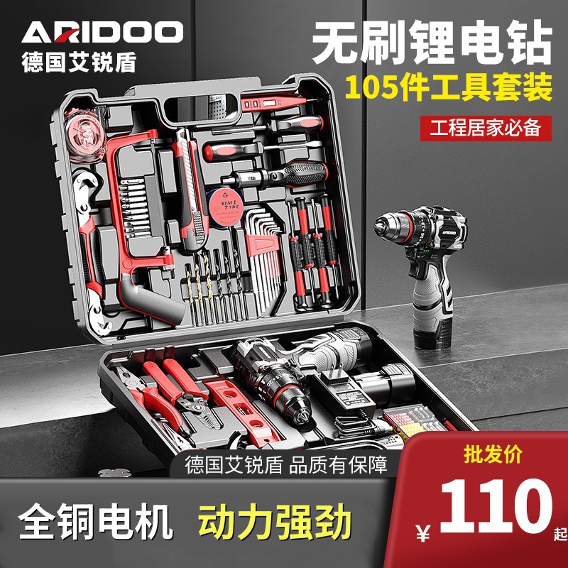 艾鋭盾電気ドリルブラシレス小型鋼砲電気ドリル充電多機能家庭用インパクトドリルリチウム電気ピストル工具箱
