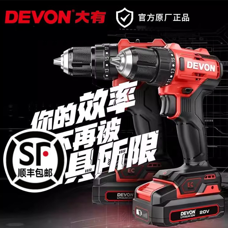DEVON/大きな懐中電灯ドリルブラシレス充電式リチウム電気ドリル多機能電動ドライバーピストルドリル5210