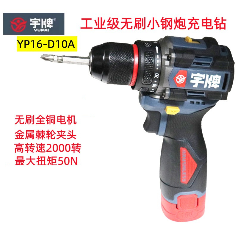YUPAI宇牌ブラシレス充電ドリル16v家庭用ハイパワーピストルドリル起動機手動ドリル電動ドライバー