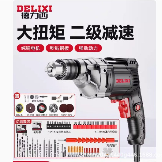 Delixi 220V ハンドドリル有線プラグインピストルドリル多機能電動工具インパクトドリル