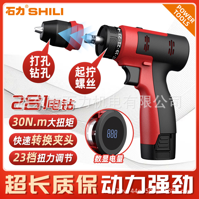 ボルト充電懐中電灯ドリル二速リチウム電気ドリル家庭用多機能インパクトピストルドリル電動ドライバーツール