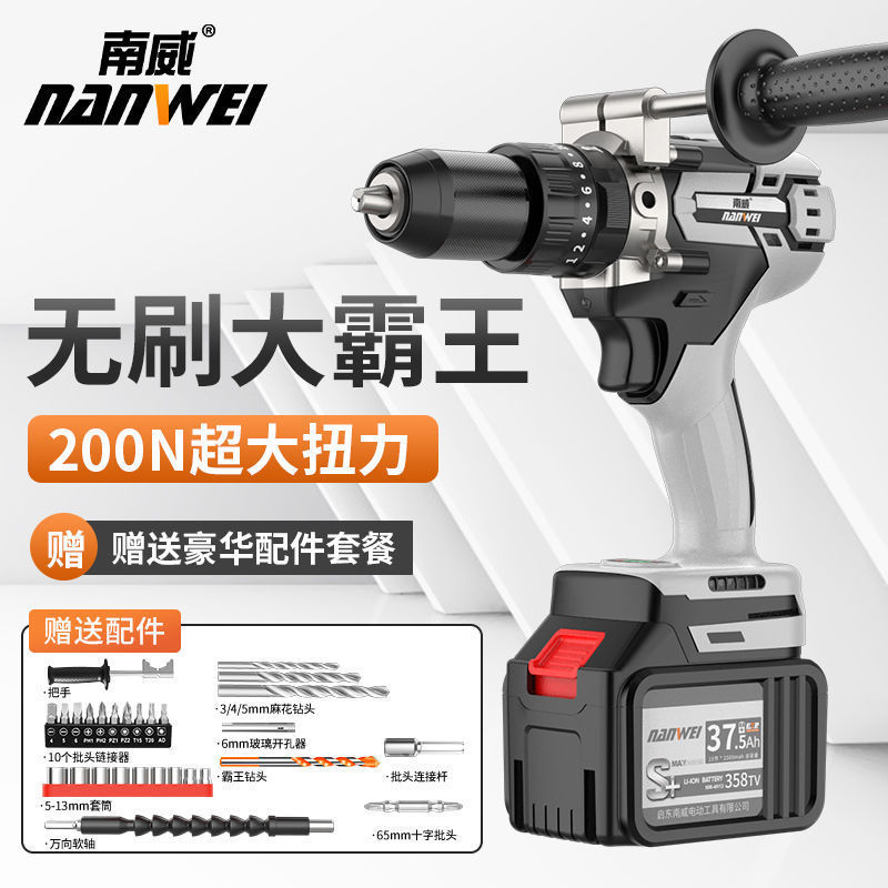 南威大功率无刷锂电池钻充电钻家用充电式手枪钻手电钻冲击钻转
