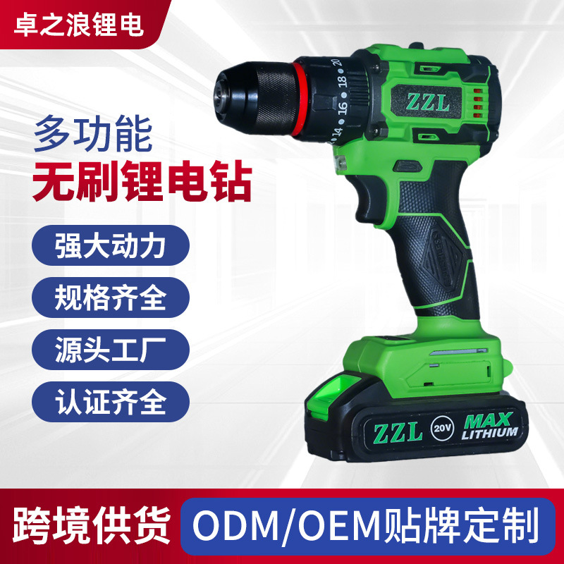 対外貿易卸売り工業級ハイパワーブラシレスリチウム電気ドリル充電式懐中電灯ドリル多機能電動ドライバー