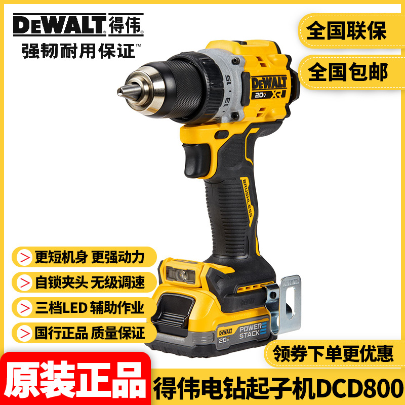オリジナルのdewaltリチウム電気20vドライバーの大トルク20vブラシレス充電ドリルdcd800