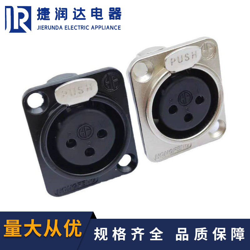 HF黒銀色金属三芯カロン母座ニッケルメッキ音響マイクソケット3芯カノン母座オーディオ座