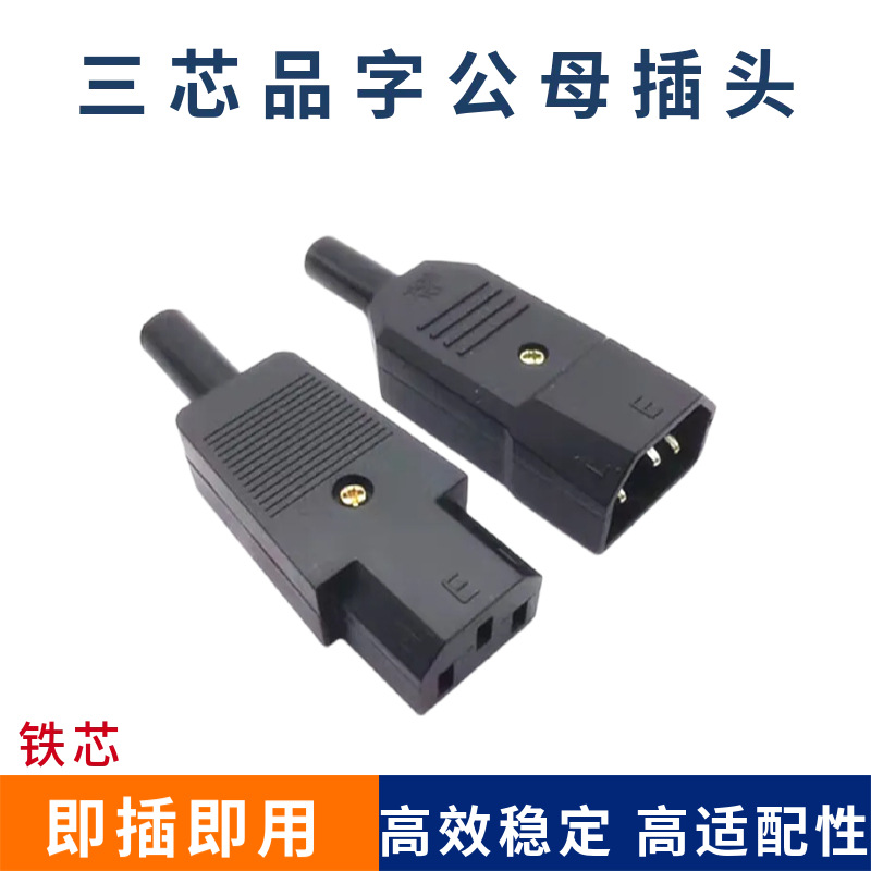 3芯オス・メスプラグ AC電源接続 鉄足 3プラグ電源配線プラグ 組立コネクタ