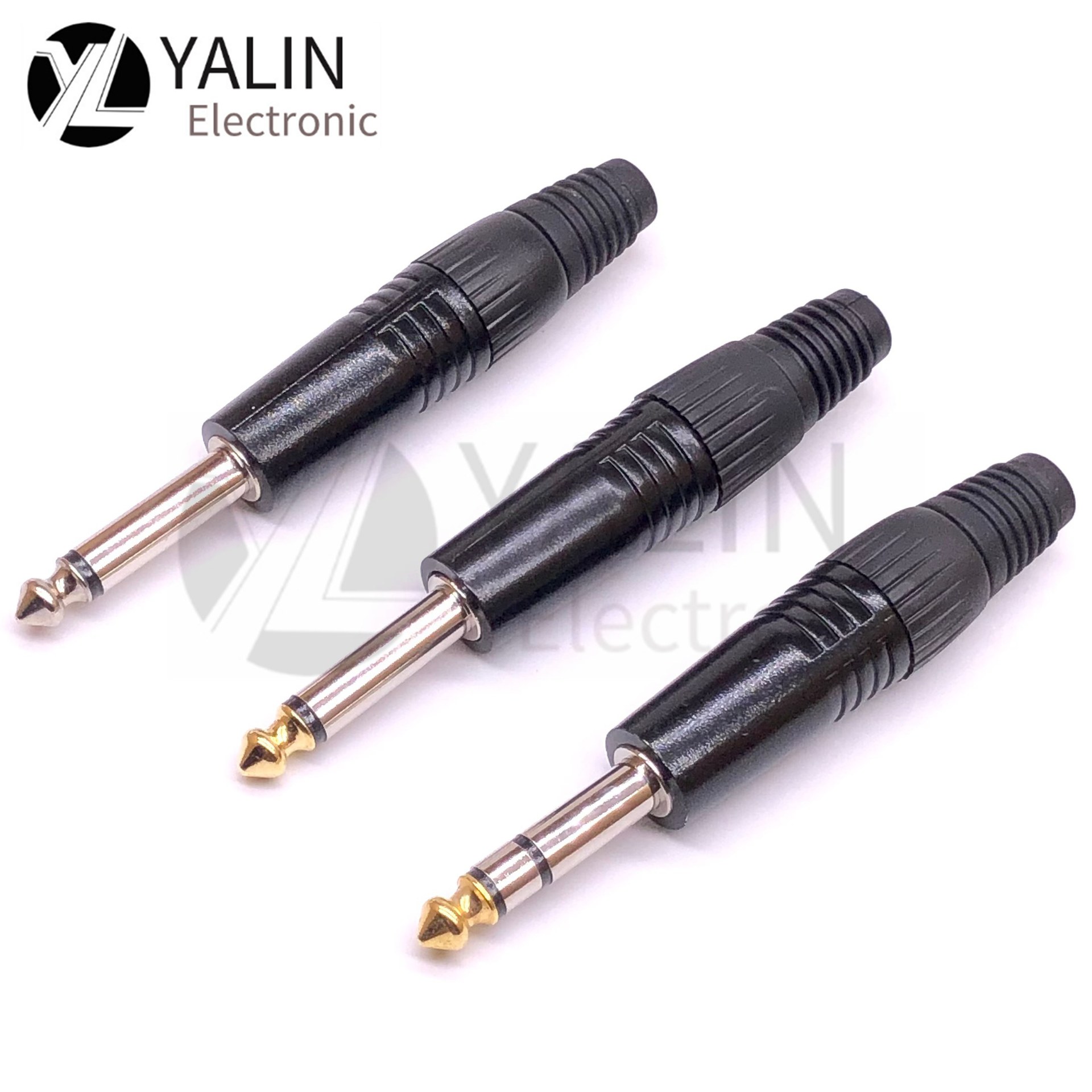 6.35 モノラルオーディオプラグニッケルメッキ金メッキヘッドブラックシェル 6.5 3 コアマイクステージミキサーコネクタ
