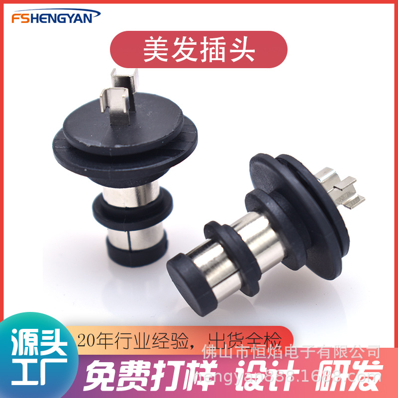 2芯美容プラグカール棒プラグ360度回転尾プラグ真鍮ニッケルメッキ防火材
