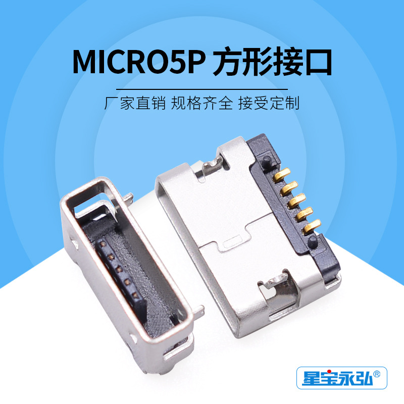 Usbプラグmicro5p母座角ab型直辺有柱5.9dip + smt前挿し後脚長0.8