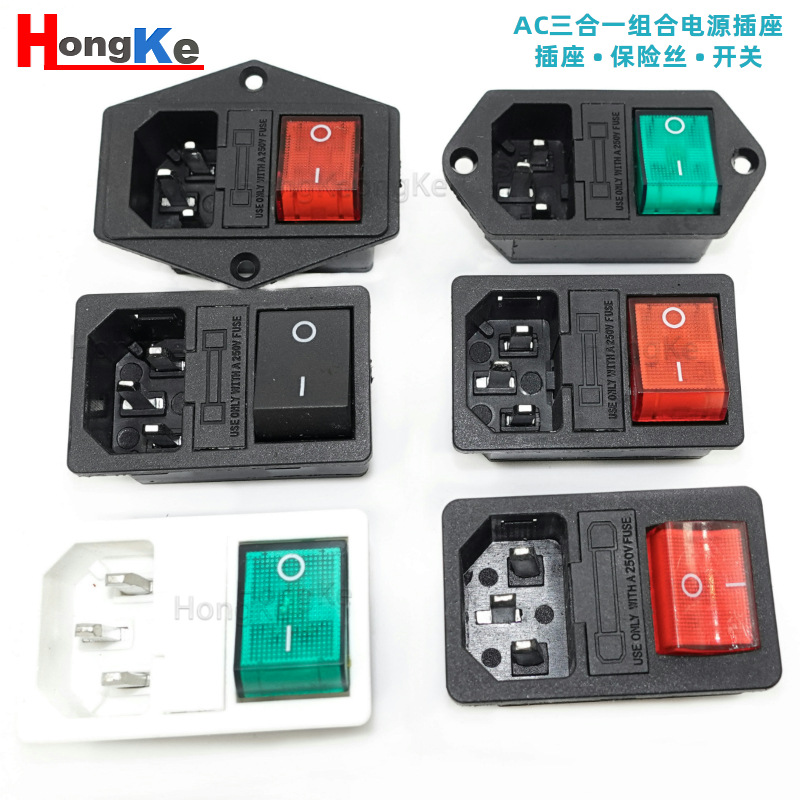 3in1 AC電源コンセントスイッチ付きヒューズ付き一体型AC-14-F16電気コンセント