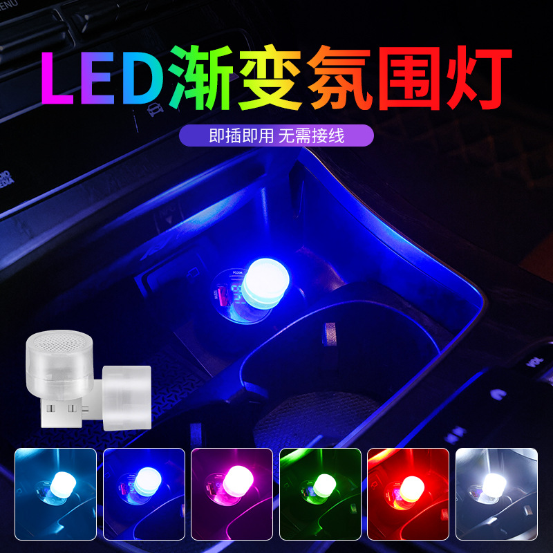シガレットusb雰囲気ランプled七彩小夜灯無改造自動車雰囲気ランプ車載室内家庭用装飾