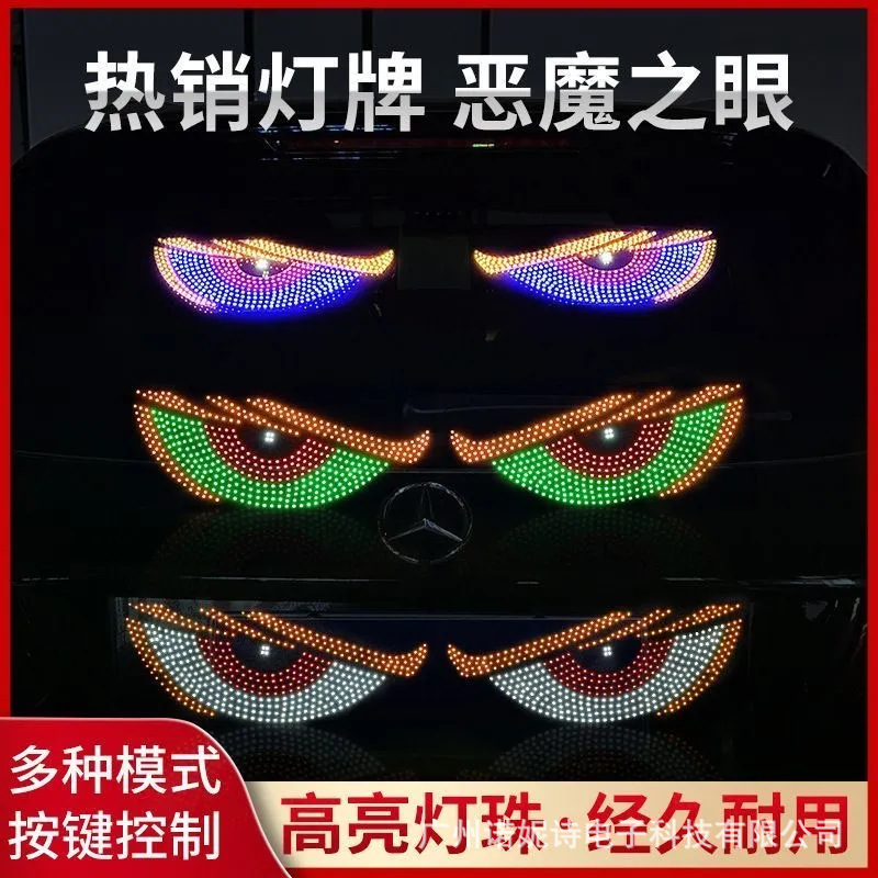 国境を越えた新しいUSBダイナミックデーモンアイカーライトLEDディスプレイトラックSUV車のフロントガラスとリアガラス