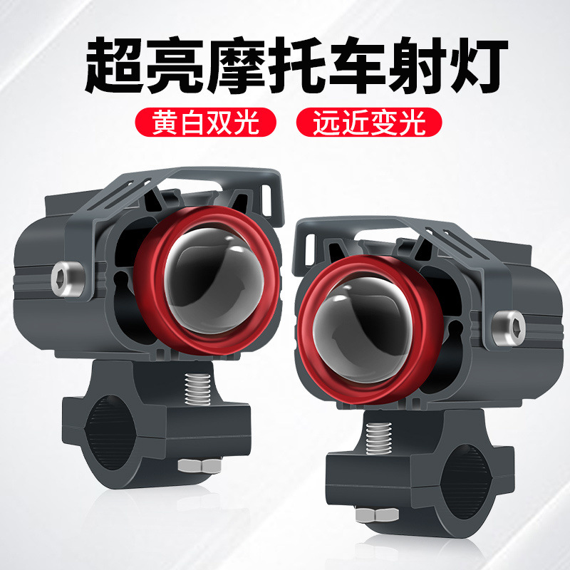 オートバイledスポットライト電気自動車舗装外付け遠近光接線レンズ電動ライトled強光自在方向