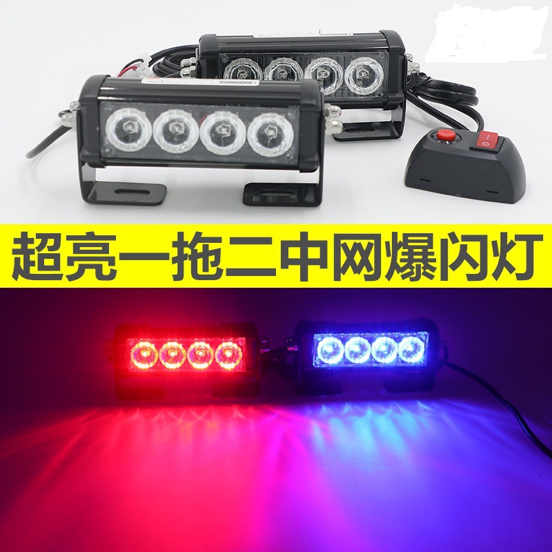 Led一モップ四中ネットライト自動車グリル改造警告灯オートバイ開道フラッシュライト赤青フラッシュライト