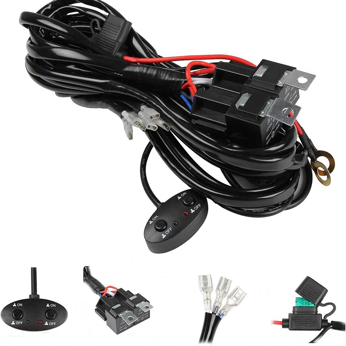 Ledライトバーハーネス14awg、12v 40aのリレー制御スイッチ