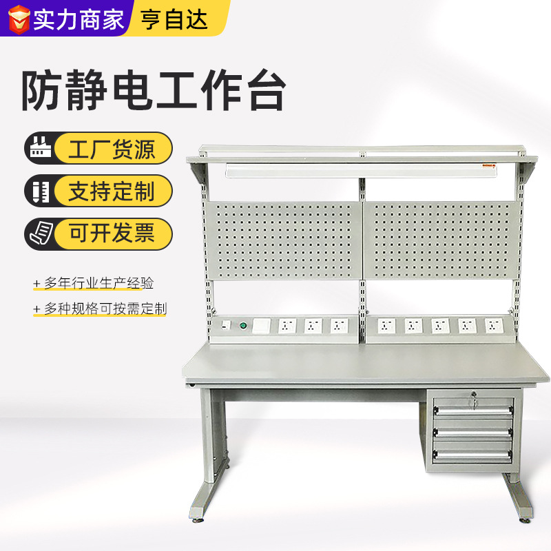 全体的な帯電防止作業台組立ライン作業員操作メンテナンス検査作業台ライト付き帯電防止作業台