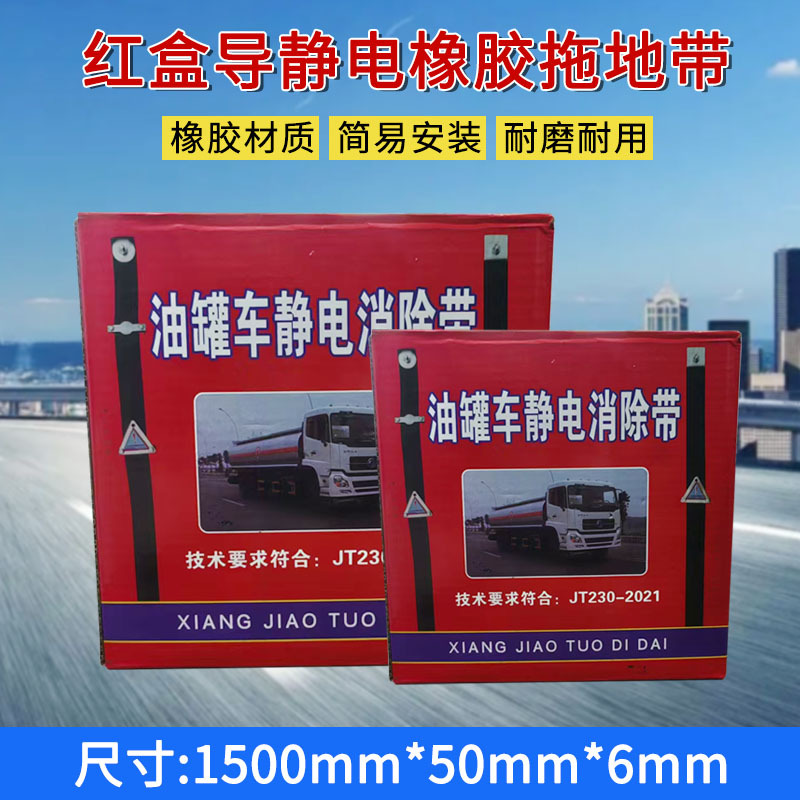オイルタンカー導電性静電気防止ドラッグストリップ、赤い箱付き、厚みのある耐摩耗性ゴムストリップ、危険化学物質輸送車両用静電気防止ドラッグストリップ