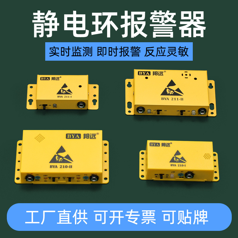 静電リング測定器by210211金属外殻黄色手首帯警報器モニター直列多ステーション