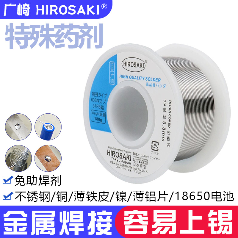 日本広崎ステンレス鋼はんだワイヤー0.8mm溶接18650リチウム電池電極ニッケル片銅鉄片はんだワイヤー