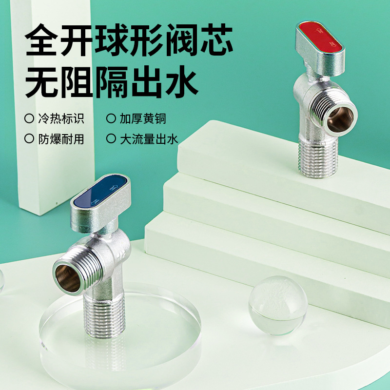 メーカー直供三角弁全銅三方角弁一進二出厨房トイレ給湯器冷熱止水弁