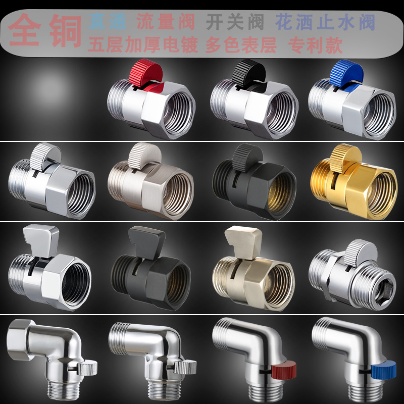 全銅製4分直通スイッチバルブ内外部接続部品トイレアングルバルブ流量調整ハンドヘルドシャワースプレーガン止水バルブ