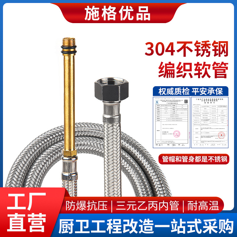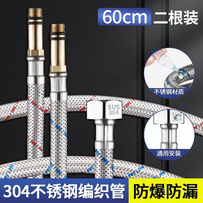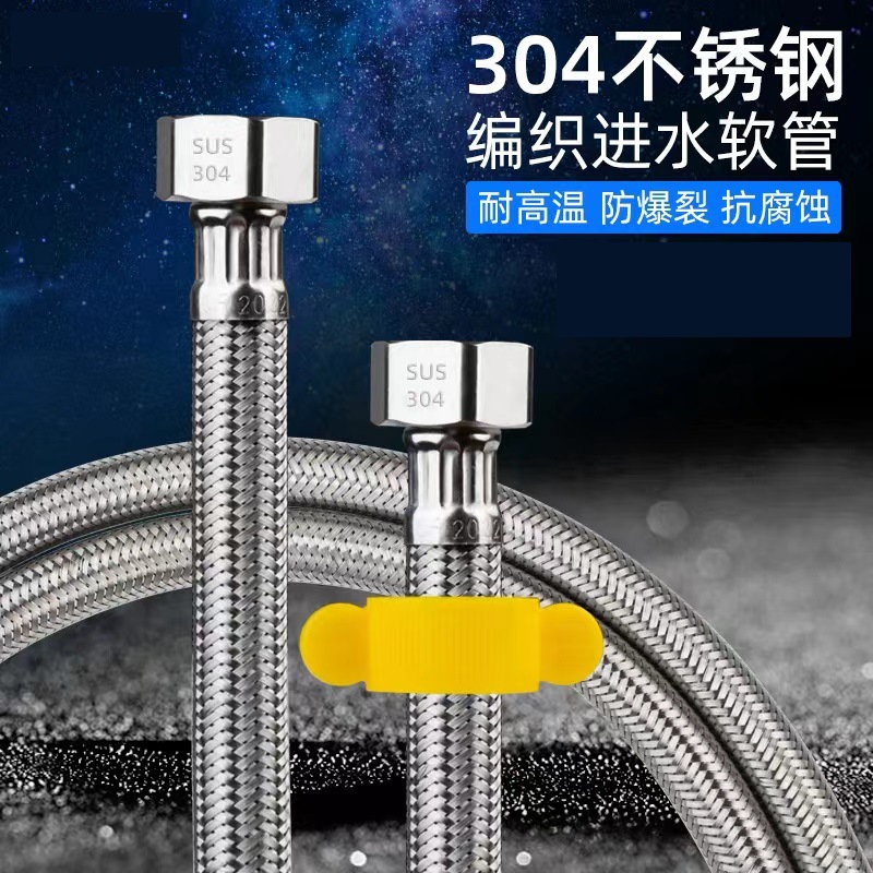 304ステンレス金属編組ホース冷熱高圧防爆水ホース給湯器便器4分双水管