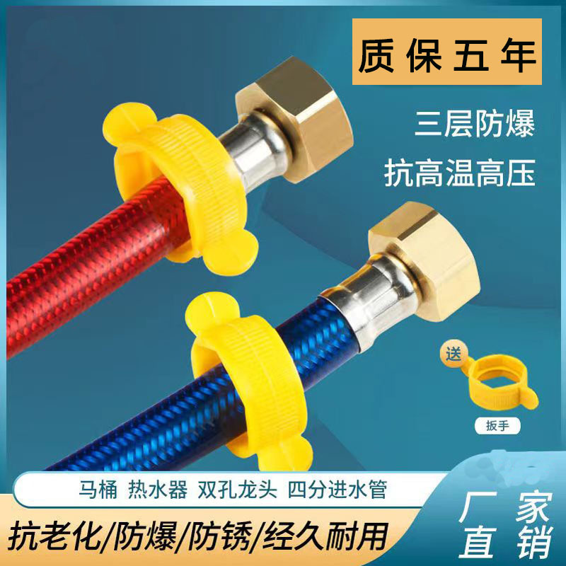 304便器給水ホースダブルヘッドステンレス鋼線編み管4分冷熱高圧防爆鋼帽上水管