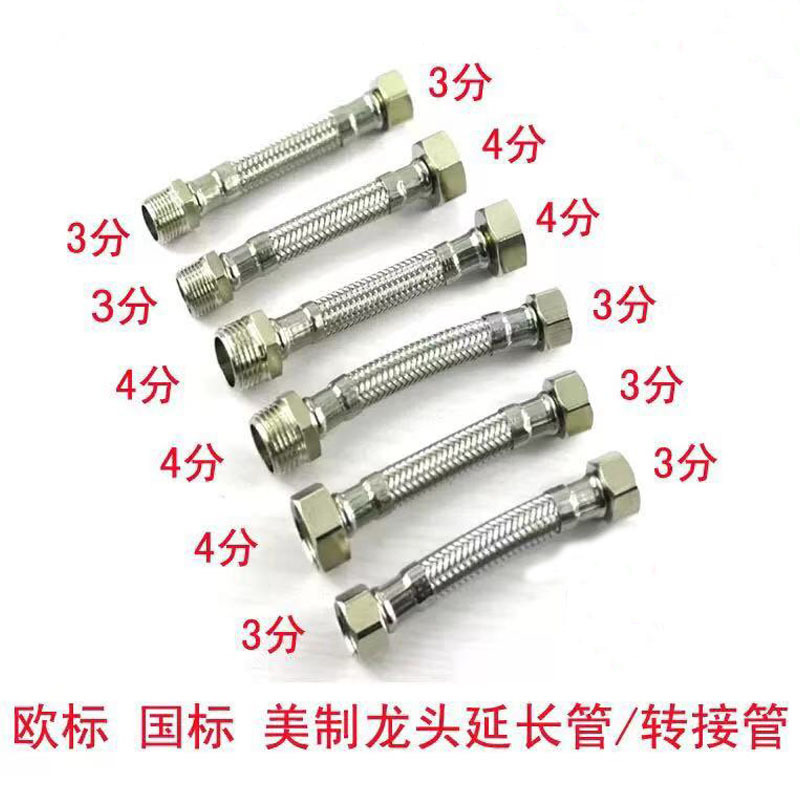 304ステンレス金属ホース編み管欧標蛇口冷熱給水温水器トイレ接続3分4分