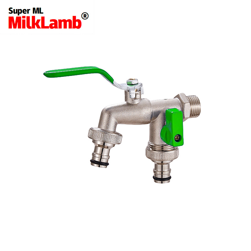 クロスボーダー専用園芸ダブル出水亜鉛合金ノズル一進二出ダブル乳首、ベルト蛇口【緑】