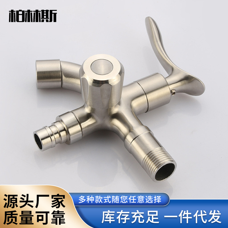 304ステンレス快開洗濯機トイレ蛇口一進二出三方二重出蛇口角弁