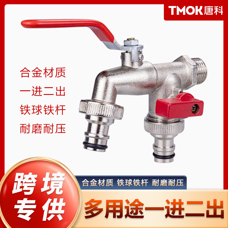 亜鉛合金のクロスボーダー専用、1イン2アウトの蛇口、黄色のアルミニウムハンドル、ガーデニング洗車蛇口、蛇口を代理店で発送できます。