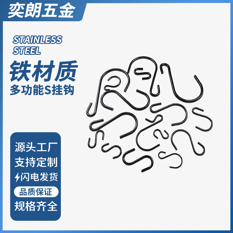 国境を越えた家庭用金属sフックキッチンワードローブ穴なし大型トランペット多機能sフック黒色中実s型