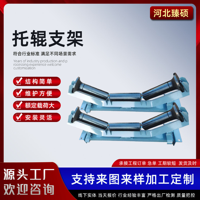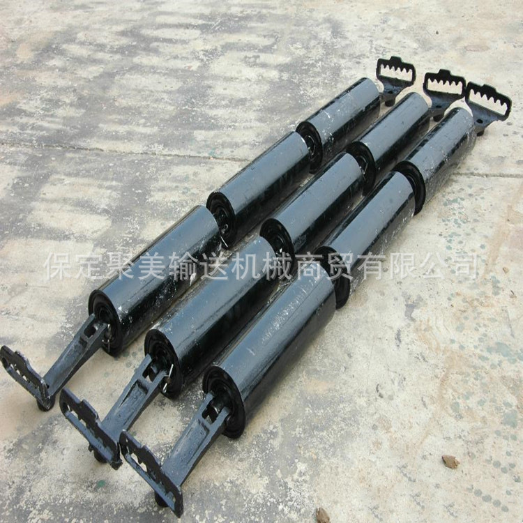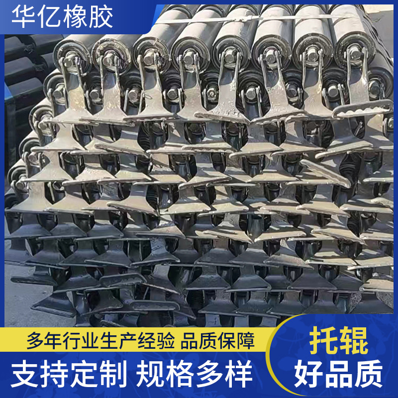 鉱山用ベルト式ベルトローラー上下平行調心ローラーv型前傾倒フック式三連溝型ローラー