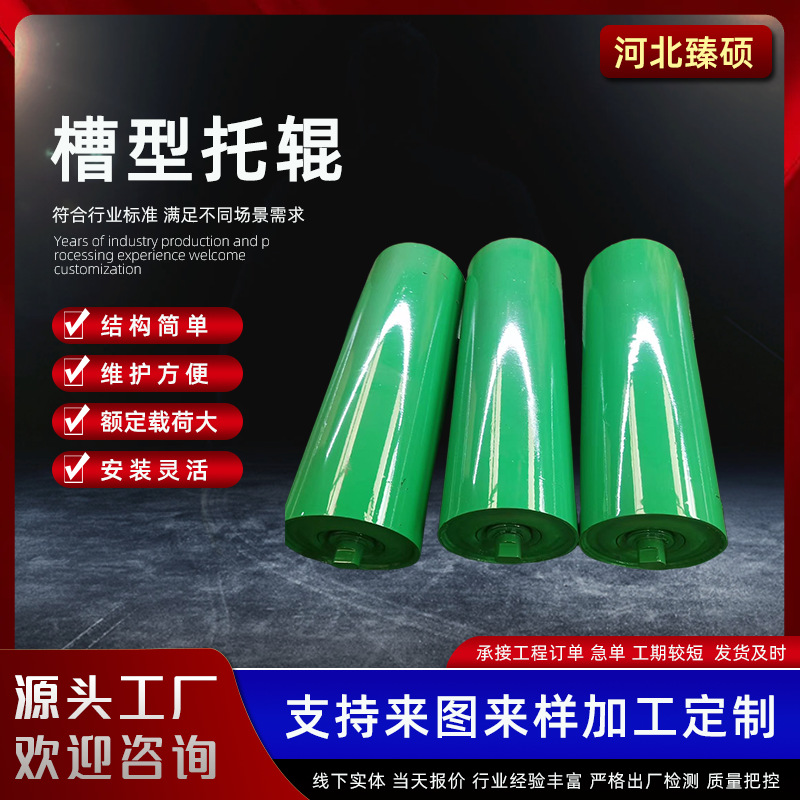 メーカー塗装溝型ローラー平行無動力ローラー鉱用コンベヤー緩衝ローラー搬送ベルトローラー