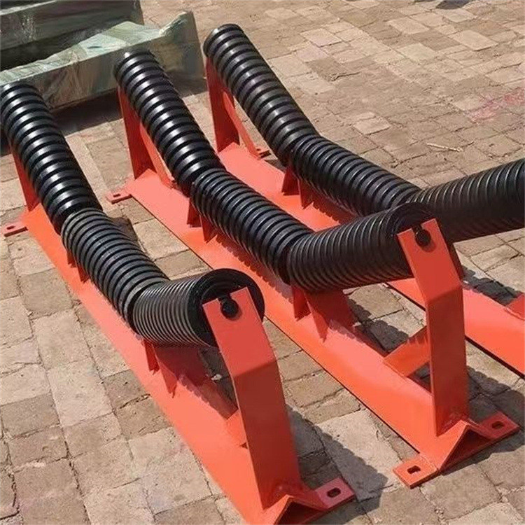 三連ローラーブラケットセット、鉱山ベルトコンベヤ、ナイロンローラー、緩衝摩擦溝型円錐三連ローラー