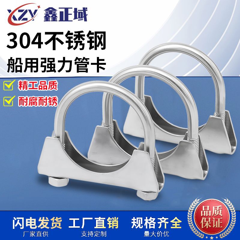 304ステンレス鋼強力パイプクリップ付きバッフルu型ボルト丸管鋼管固定具船用バックル排気管クリップ