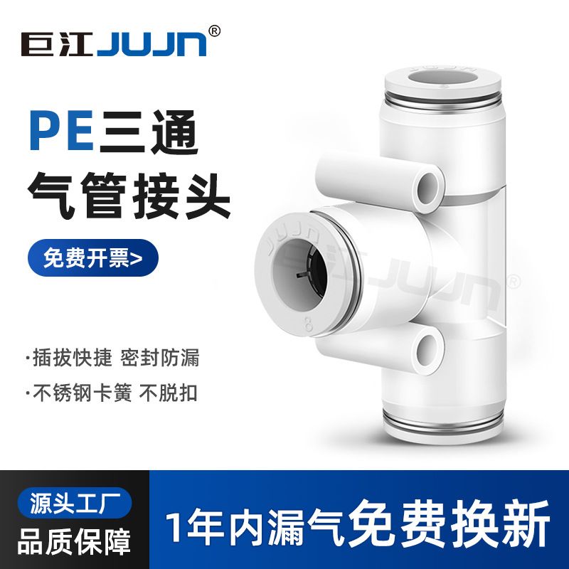巨江jujn空気圧PUエアチューブT型PE三通PE8 10 12 14 16MM白色高分子プラスチック