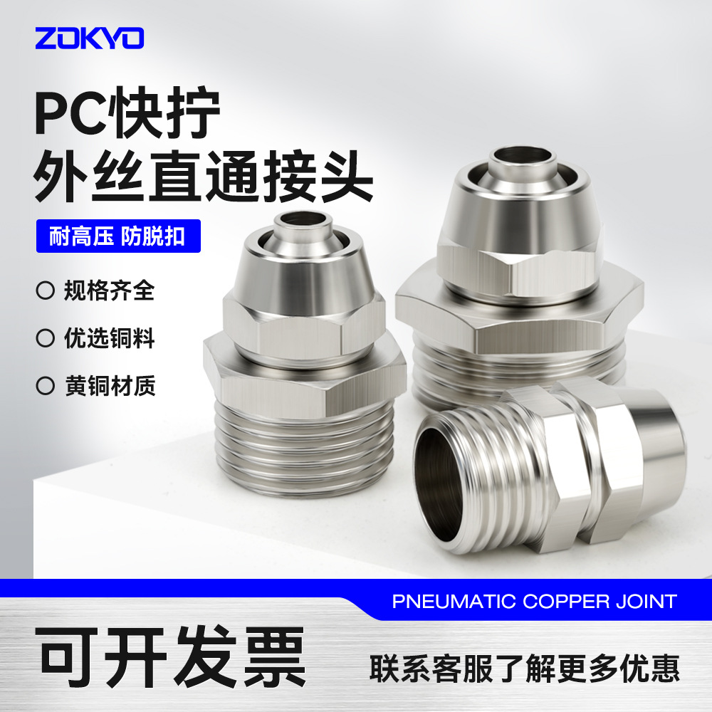 気管クイックコネクタ空気圧部品PC8-02ネジ式直通エアソース外ネジ10-016-03銅製クイックコネクタ