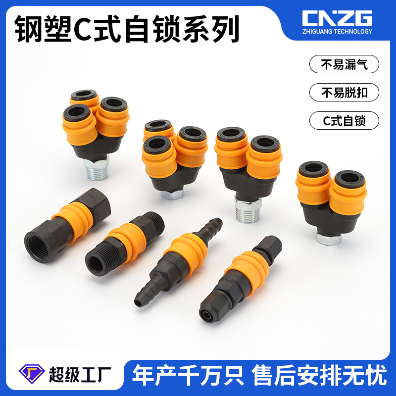 C式クイックジョイントプラスチック鋼セルフロックエアガン風管木工エアポンプ空圧機雄母ヘッドワンタッチエア継手