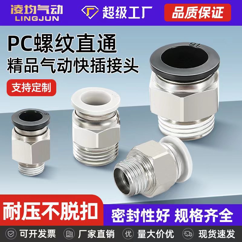 凌均気動部品気管快速継手ワンタッチエアコンプレッサのエアポンプねじ直通pc 8/10/12-0203