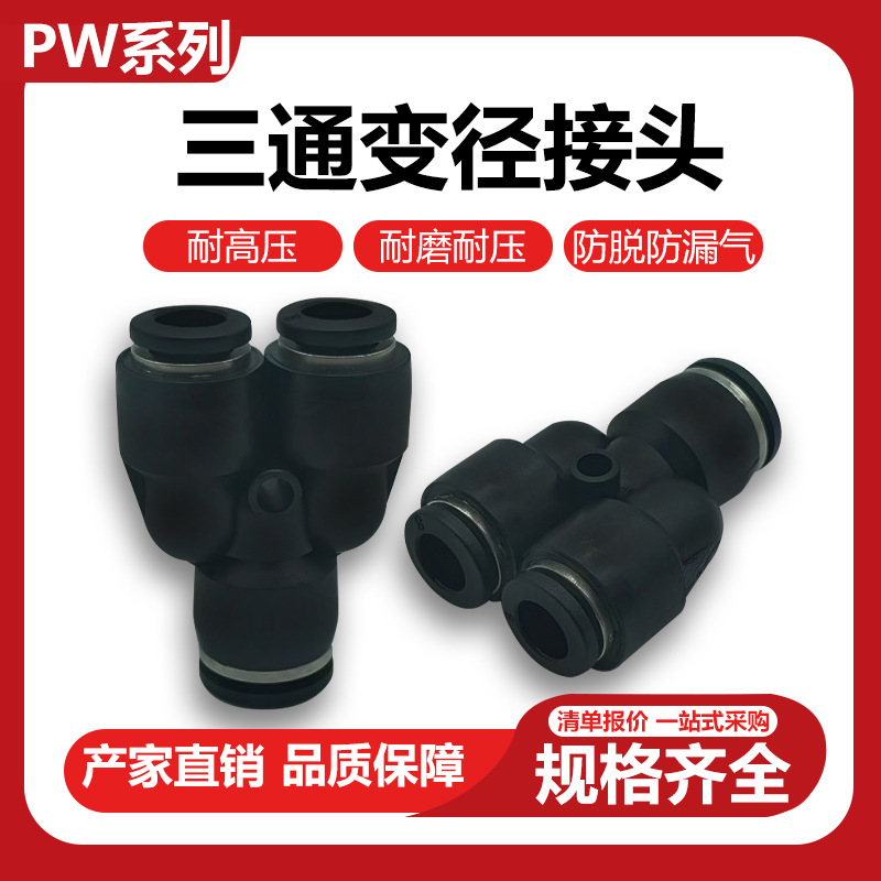 エアクイック継手y型変径三方py4/8/10/12プラスチッククイック継手PW8-6 10-8